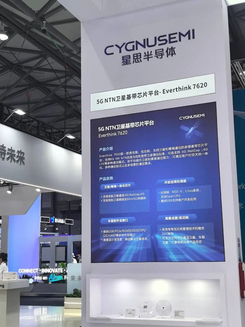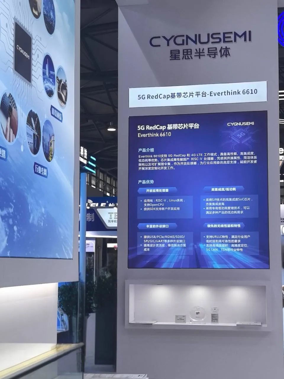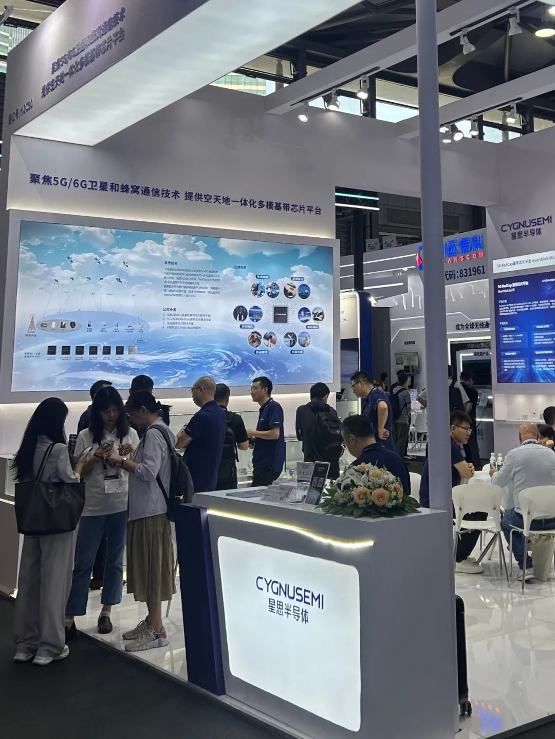 本次参展,星思展示了5G NTN卫星通信、5G eMBB、5G RedCap等系列基带芯片平台并分享其最新进展,同时展示覆盖各场景的解决方案及合作伙伴的终端产品。